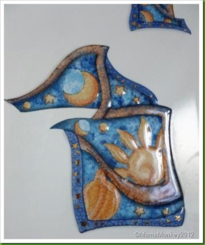 In the bathroom Tom and Laura have the most wondrous tiles depicting the “solar system” which we are totes enamoured with, and think that perhaps they are the sort of tiles that Derek Acorah might also favour in his main bathroom or en-suite. They are most romantic!