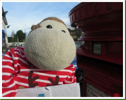 Thank you so much for yours - it was the first one to arrive and caused much merriment at Parkhurst Towers - even Mr P looks forward to the arrival of the monkey card. For now it has pride of place on the mantelpiece but we are away for Christmas and will be taking a few special cards with us to decorate our cabin - yours is definitely coming with us. Card to follow soon to you - I am really behind this year but hoping by Monday to have all my cards in the post xx